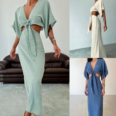 Women's Summer Slim Fit Midriff Outfit V-neck Dress