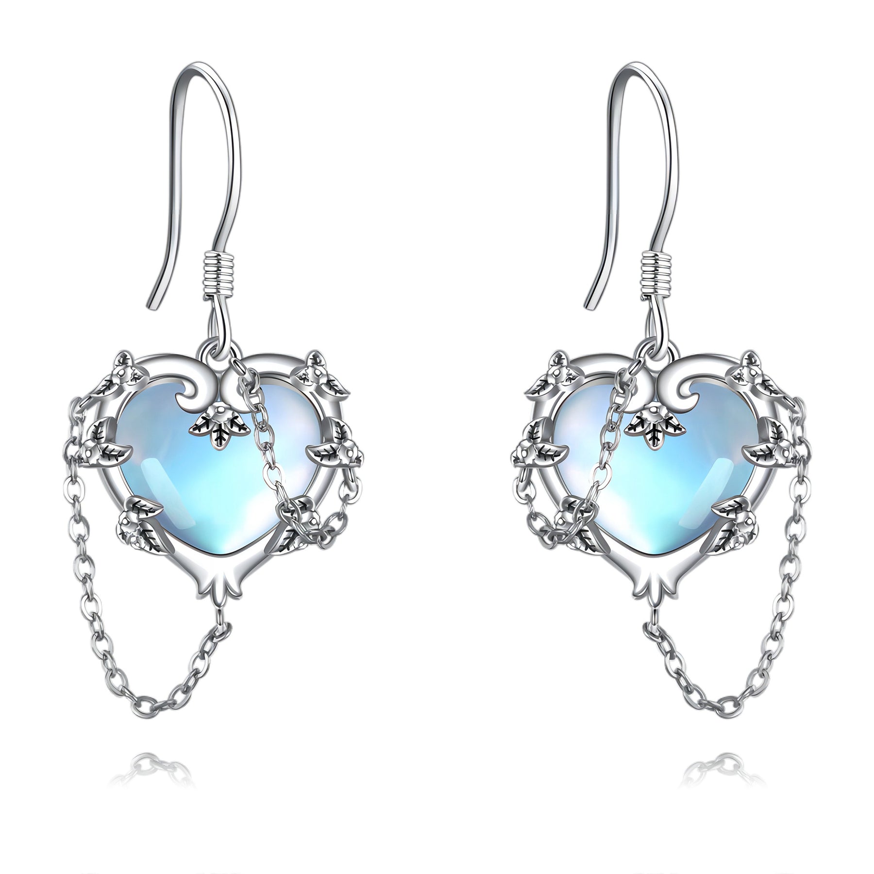 Witches Heart Moonstone Earrings 925 Sterling Silver Jewelry for Women